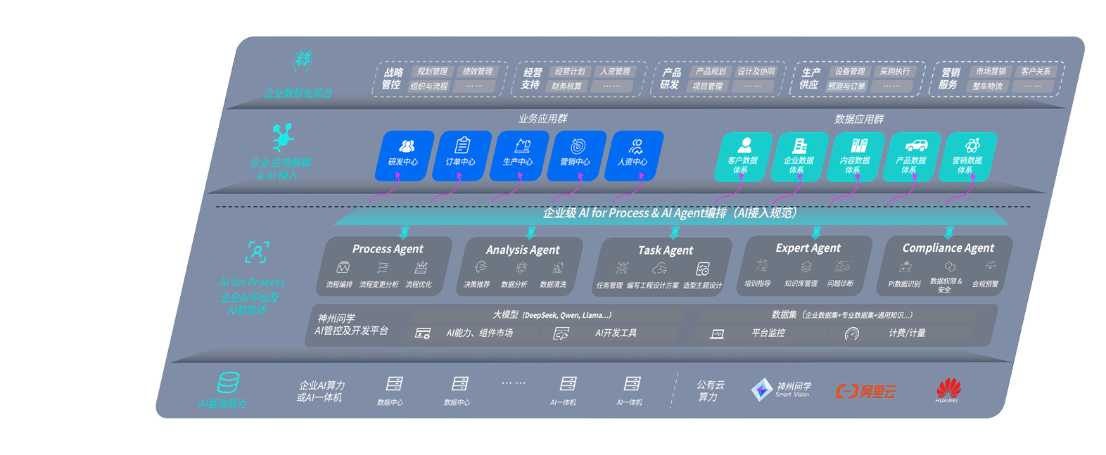 彩霸王问学智车解决方案是一套基于AI技术的汽车行业智能化系统,,,覆盖从底层算力到顶层AI应用的全栈方案。。。方案由算力层、、、、模型层和应用层组成:算力层,,,,方案支持多种一体机配置,,,具备云端灵活部署、、多云适配以及动态优化计算资源的能力;模型层,,,彩霸王问学平台版提供了企业级AI应用一站式构建与管理平台,,支持基于后训练强化技术的汽车企业专属模型的训练、、、、评测和运营;应用层,,,彩霸王问学DeepSeek版提供包括超级员工、、智能招采、、、、智能营销、、、、智能客服、、、、AI for BI等一系列解决方案,,,可助力汽车行业实现数字化转型,,,让管理更智能、、响应更敏捷。。